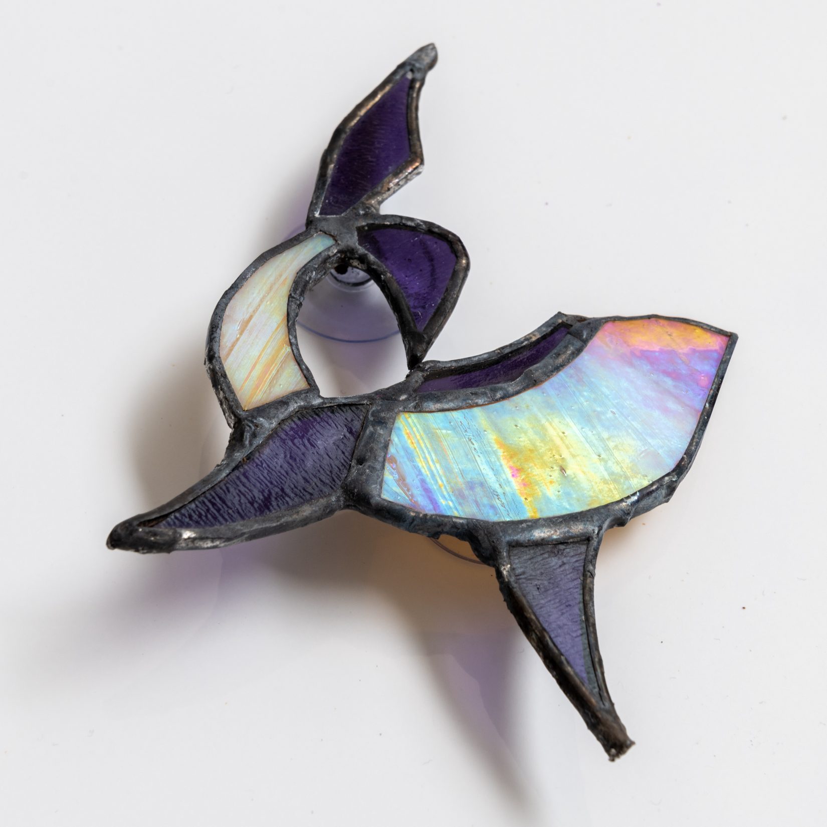 Seleccionamos vidrios de colores e irisados para disfrutar de la variación de tonos según el ángulo de observación y la luz reflejada.