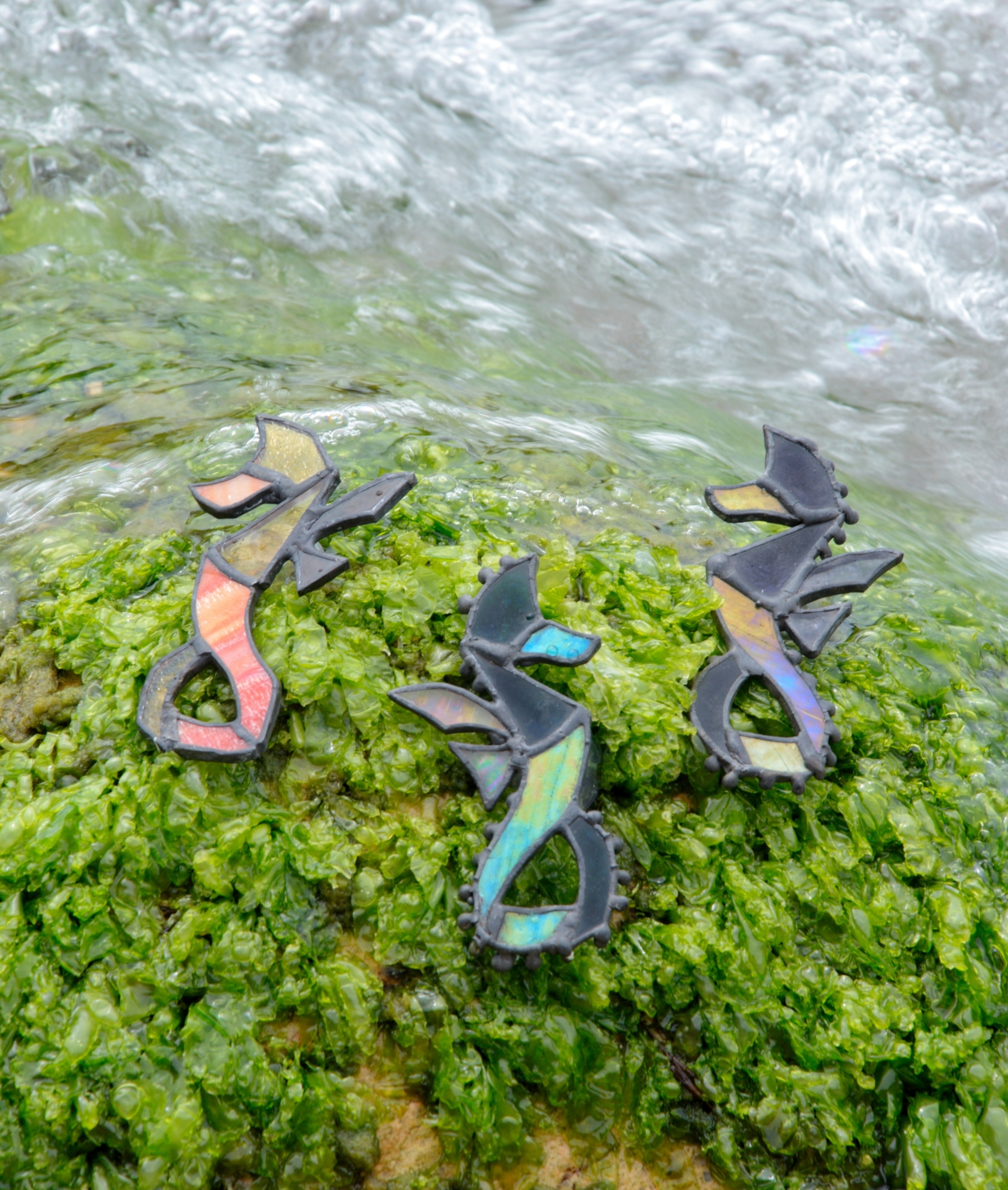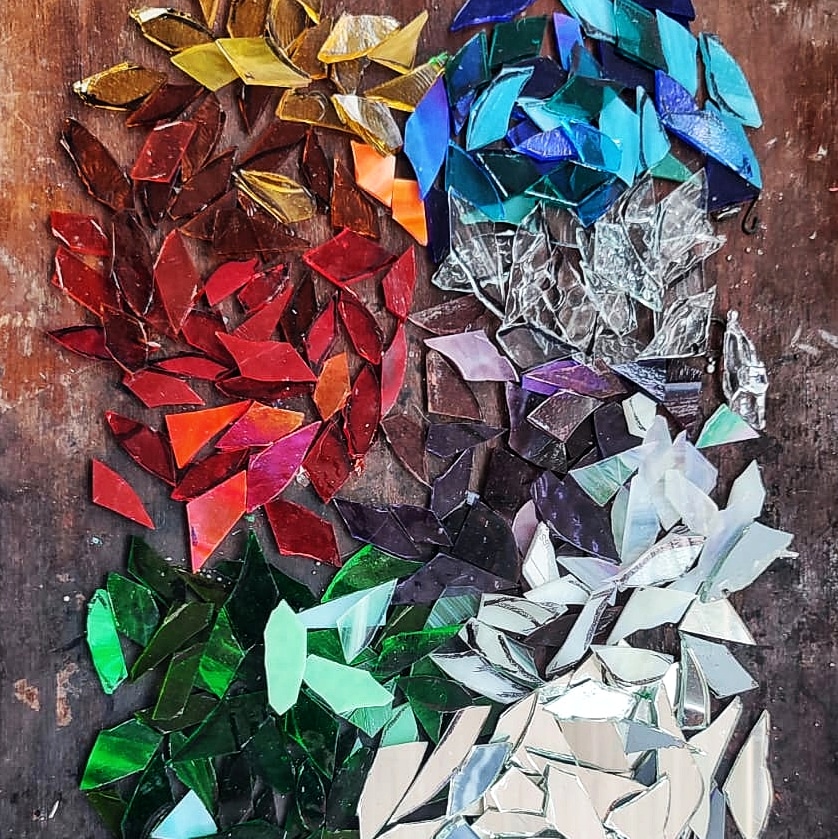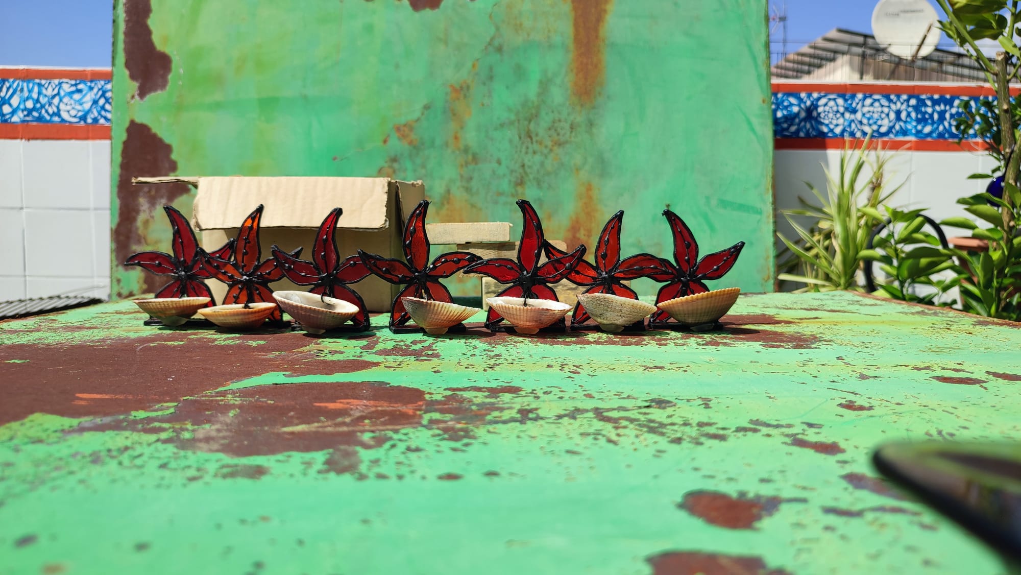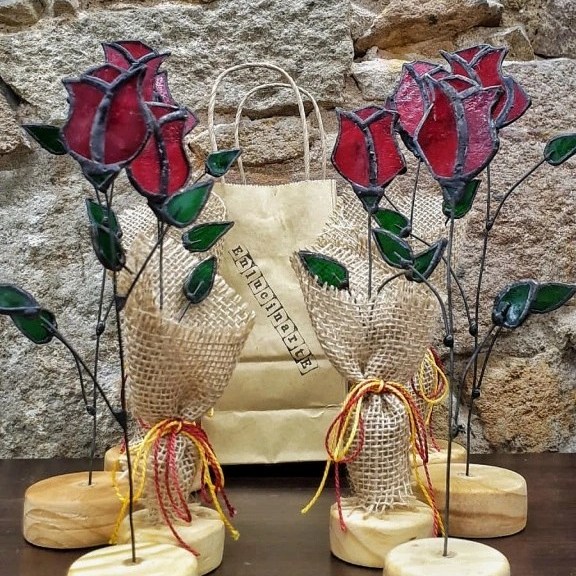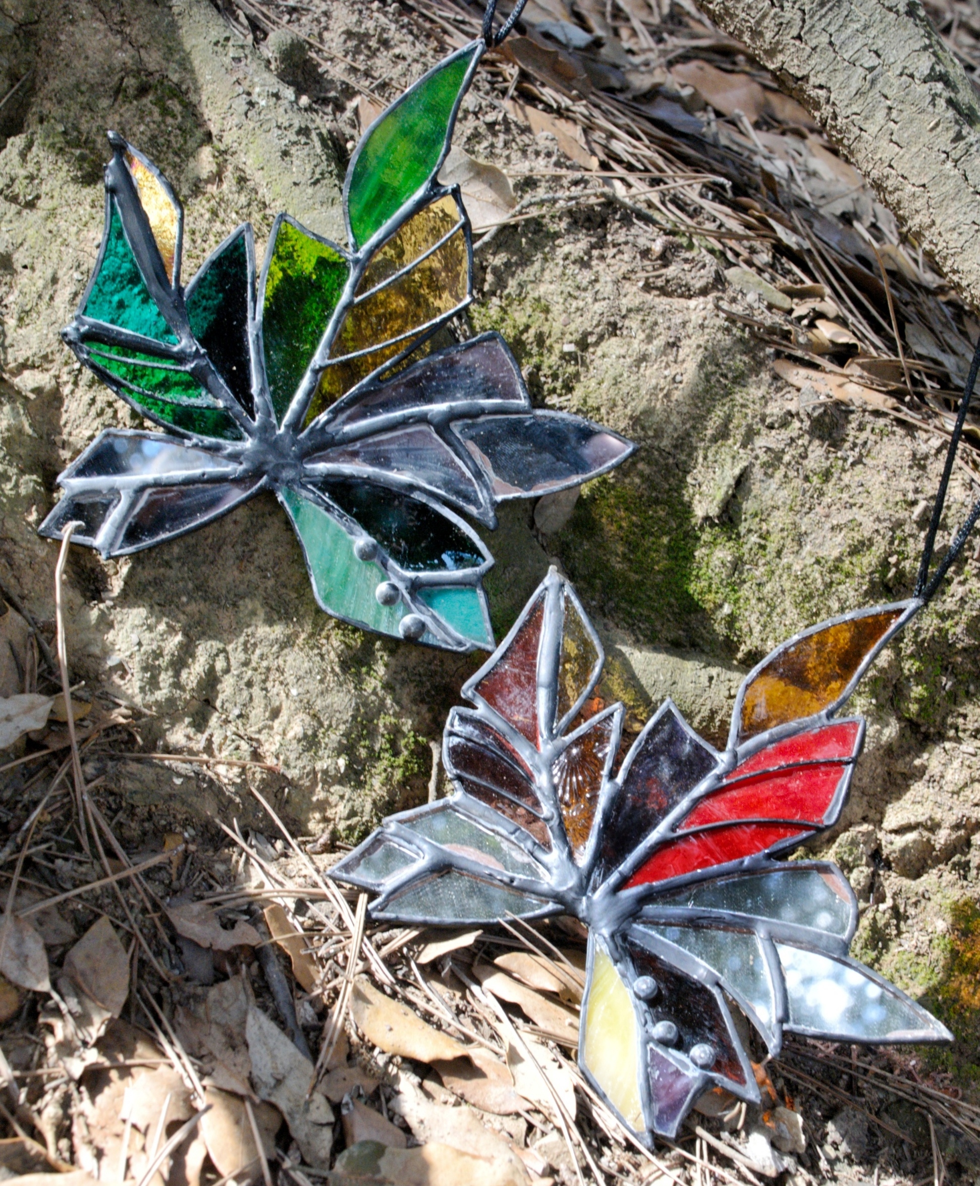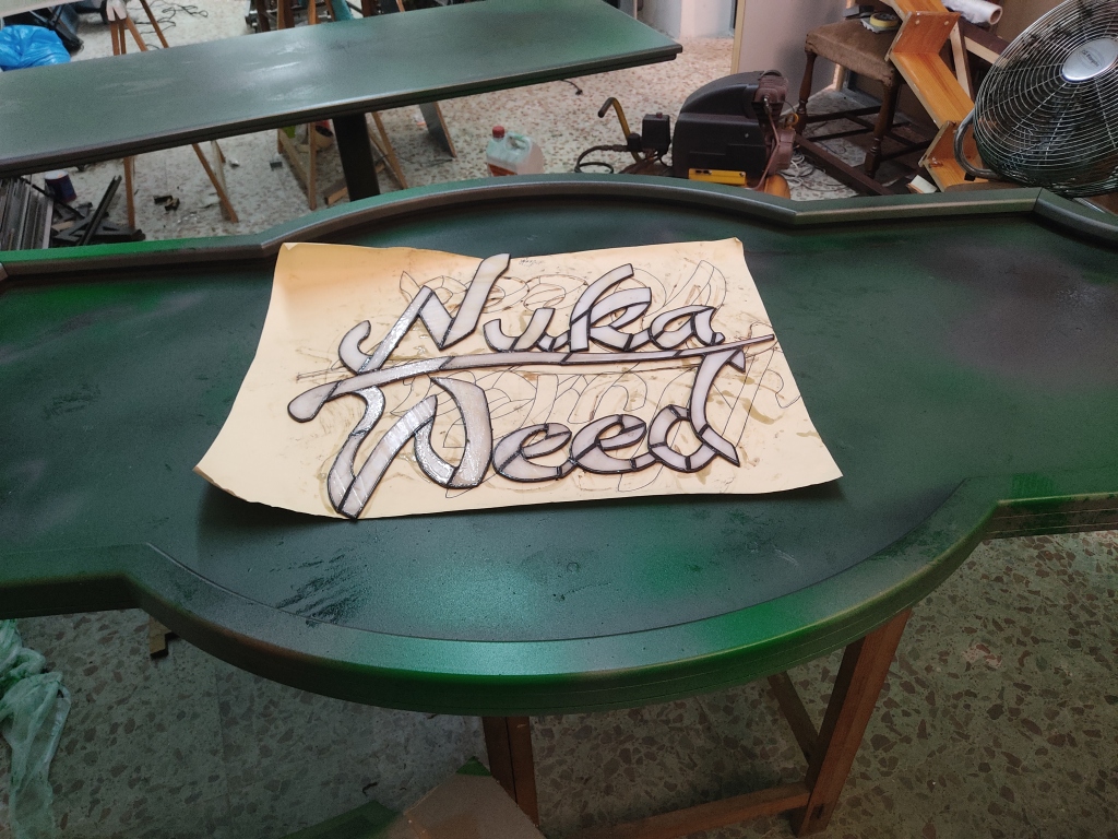 Sucesivamente se recorre cada pieza encintada, soldándola individualmente, para luego poder soldar la estructura final. Partiendo del método Tiffany, elaboramos estructuras y técnicas propias que nos permiten soldar en relieve, creando formas complejas. Al trabajar en ángulos específicos, las piezas mas complejas deben ir bien sujetadas para mantener su forma.