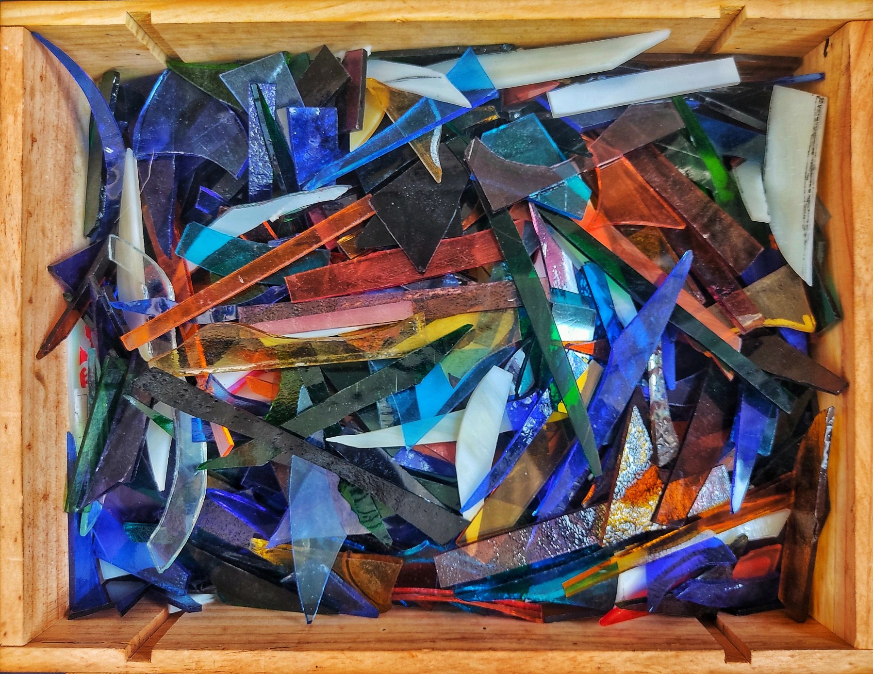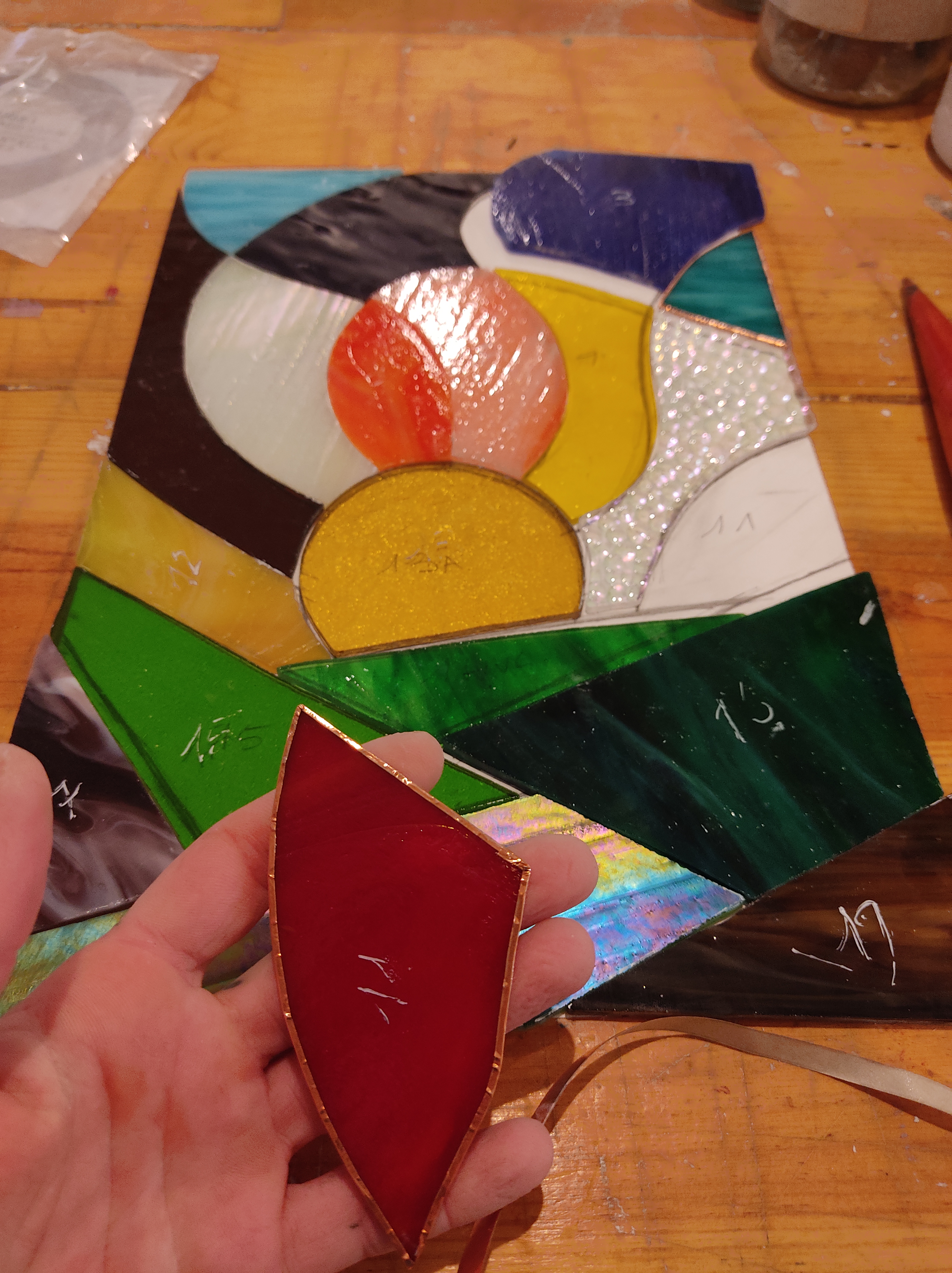La fase del encintado es extremadamente laboriosa, debido a las distintas texturas y formas que tienen las piezas de vidrio. La cinta debe quedar muy bien sujeta para que la obra pueda ser resistente. Cada proyecto utiliza un grosor de cinta distinto en función del tipo de vidrio.