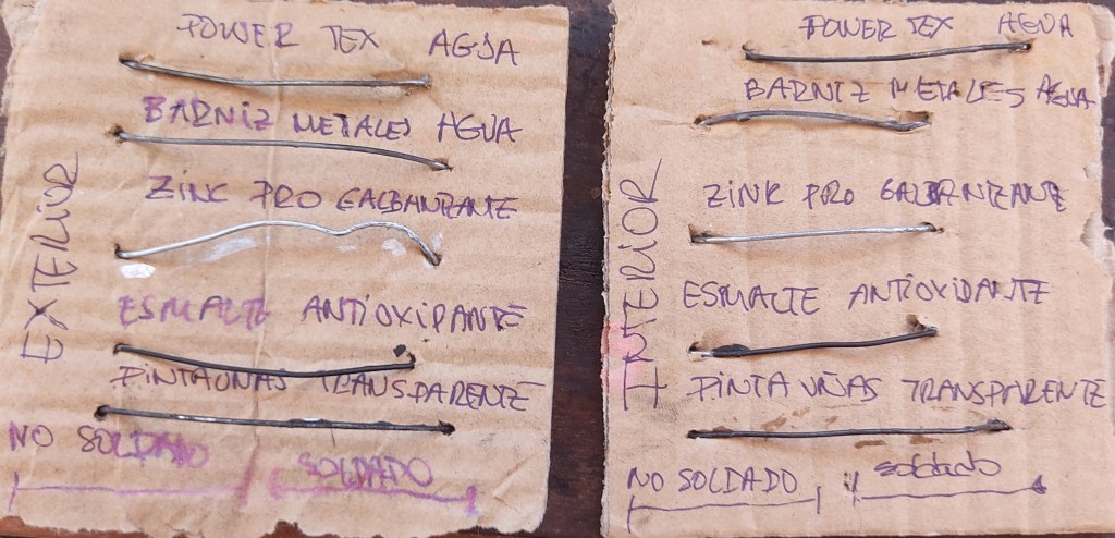 La ultima fase del proceso de soldado es la aplicación de la pátina, que reacciona con el metal, protegiéndolo y dándole un acabado ennegrecido.