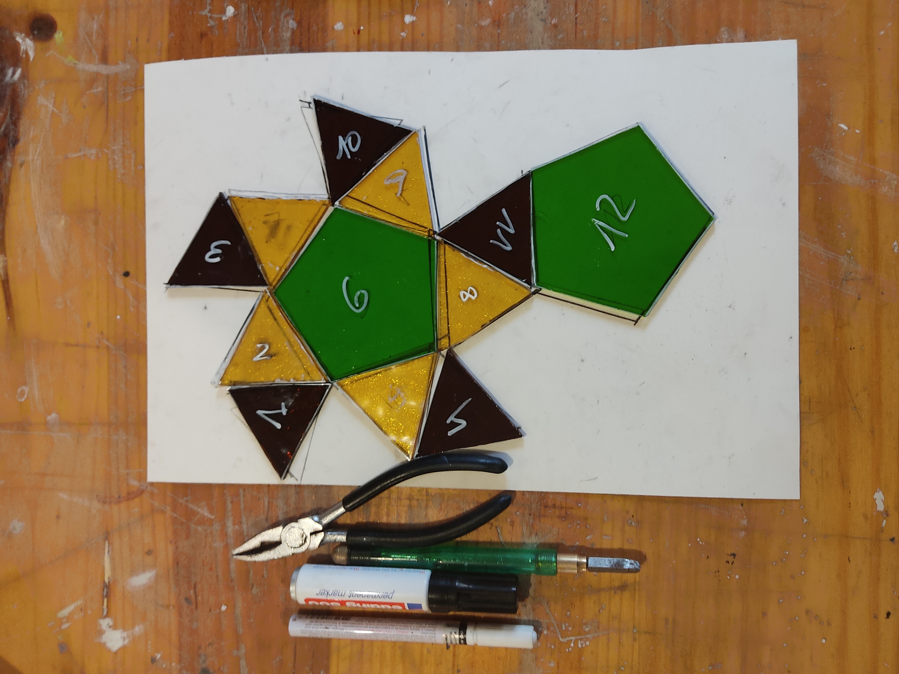 Marcamos nuestra plantilla en las piezas de vidrio para poder guiarnos en el diseño. En diseños más complicados numeramos las piezas.