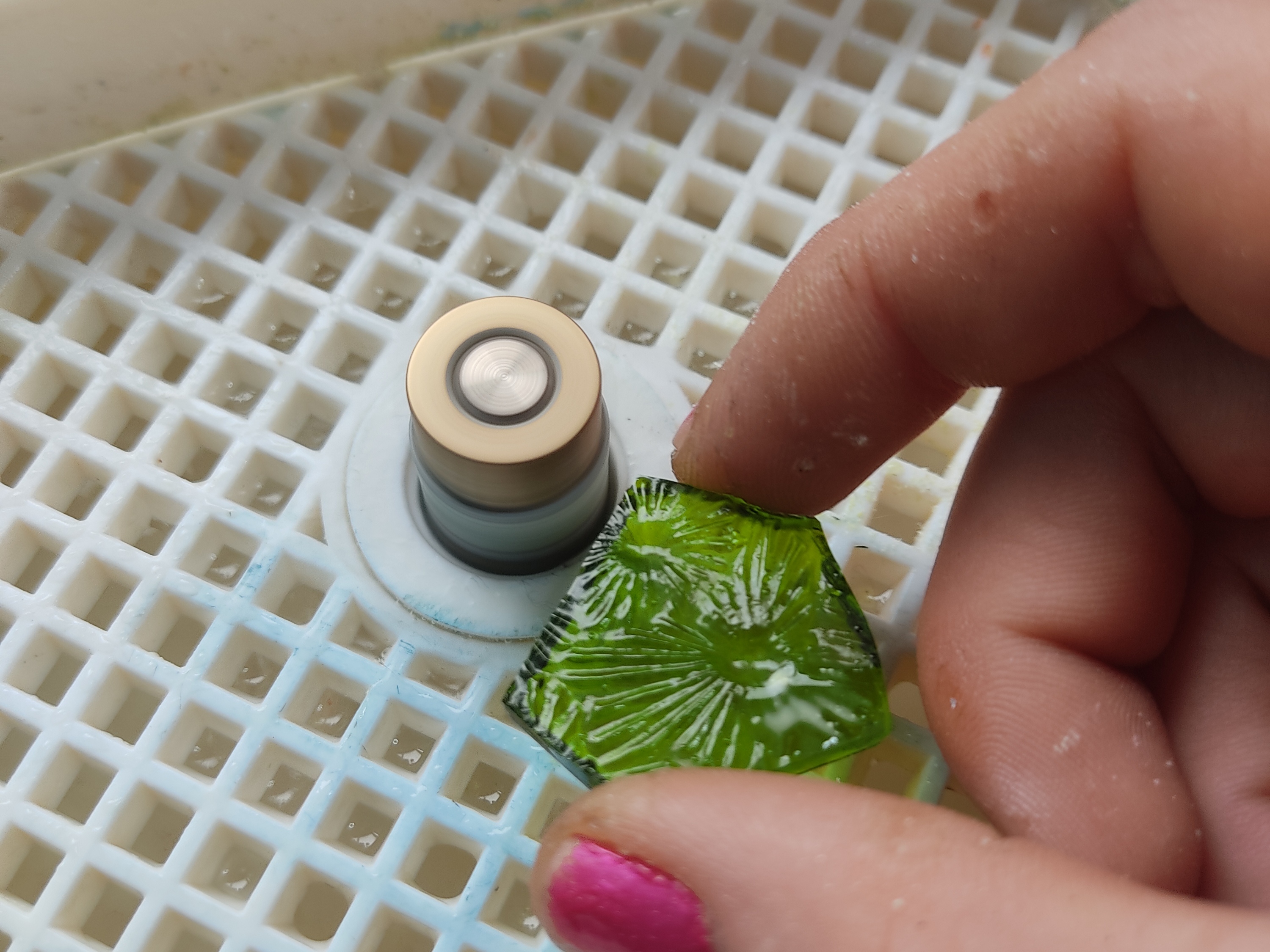 Cada pieza de vidrio debe ser pasada por la amoladora de diamante para pulir los laterales cortantes.
