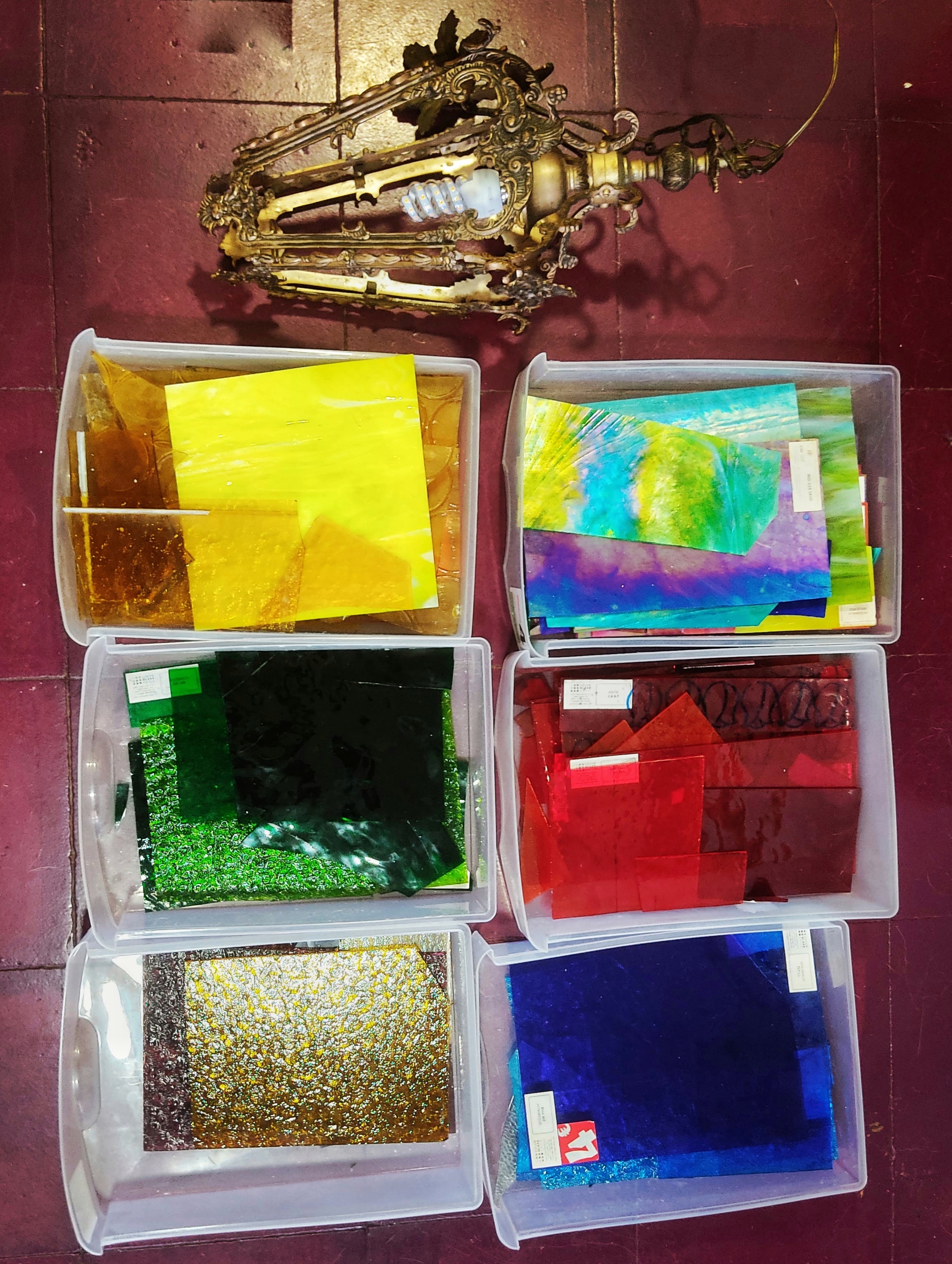 Seleccionamos entre los fragmentos de vidrio, las piezas adecuadas en textura y color para componer una escena en planos, que permite crear profundidad adentrándonos en el ambiente de cada estación.