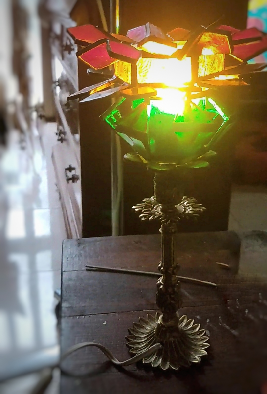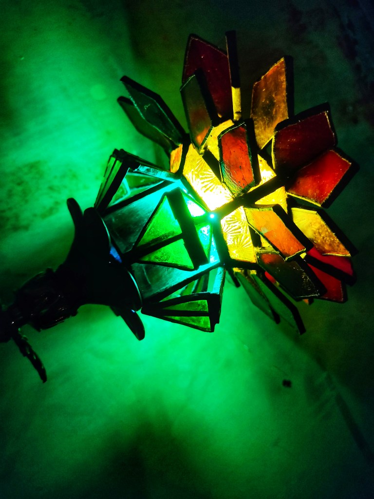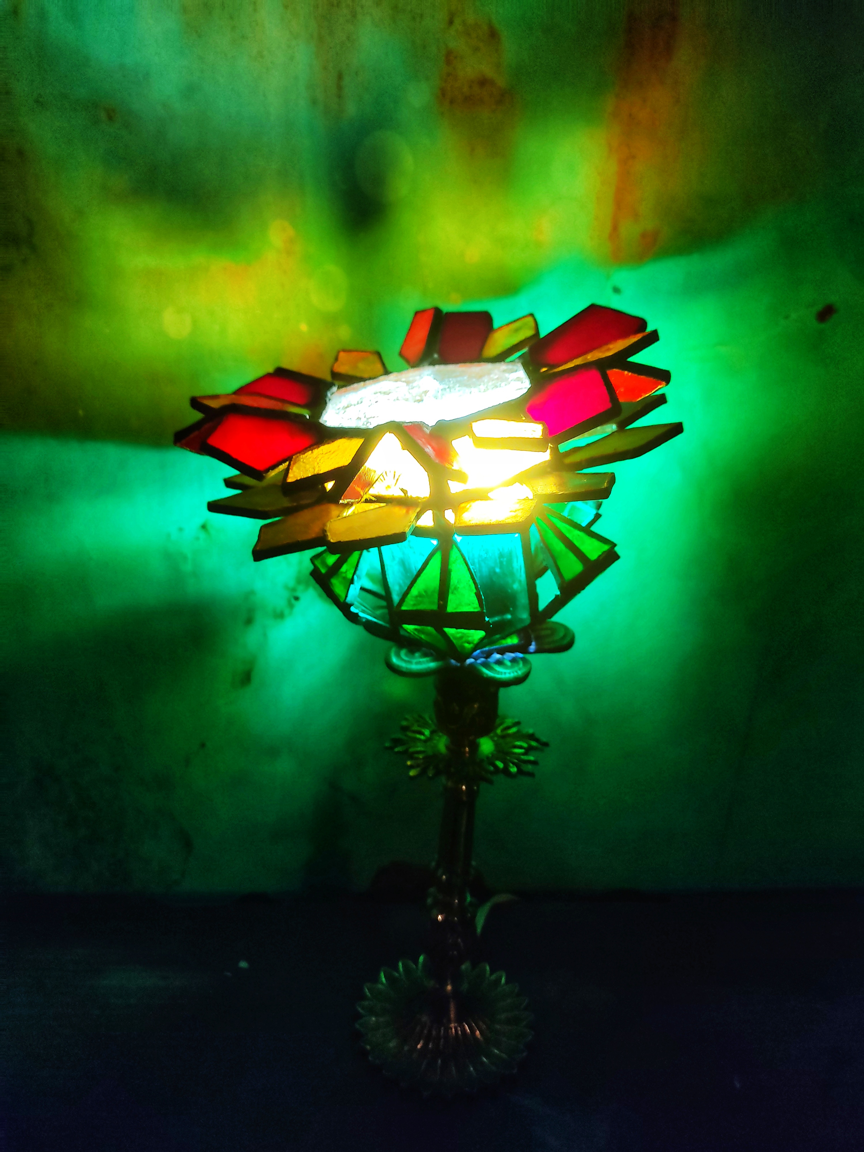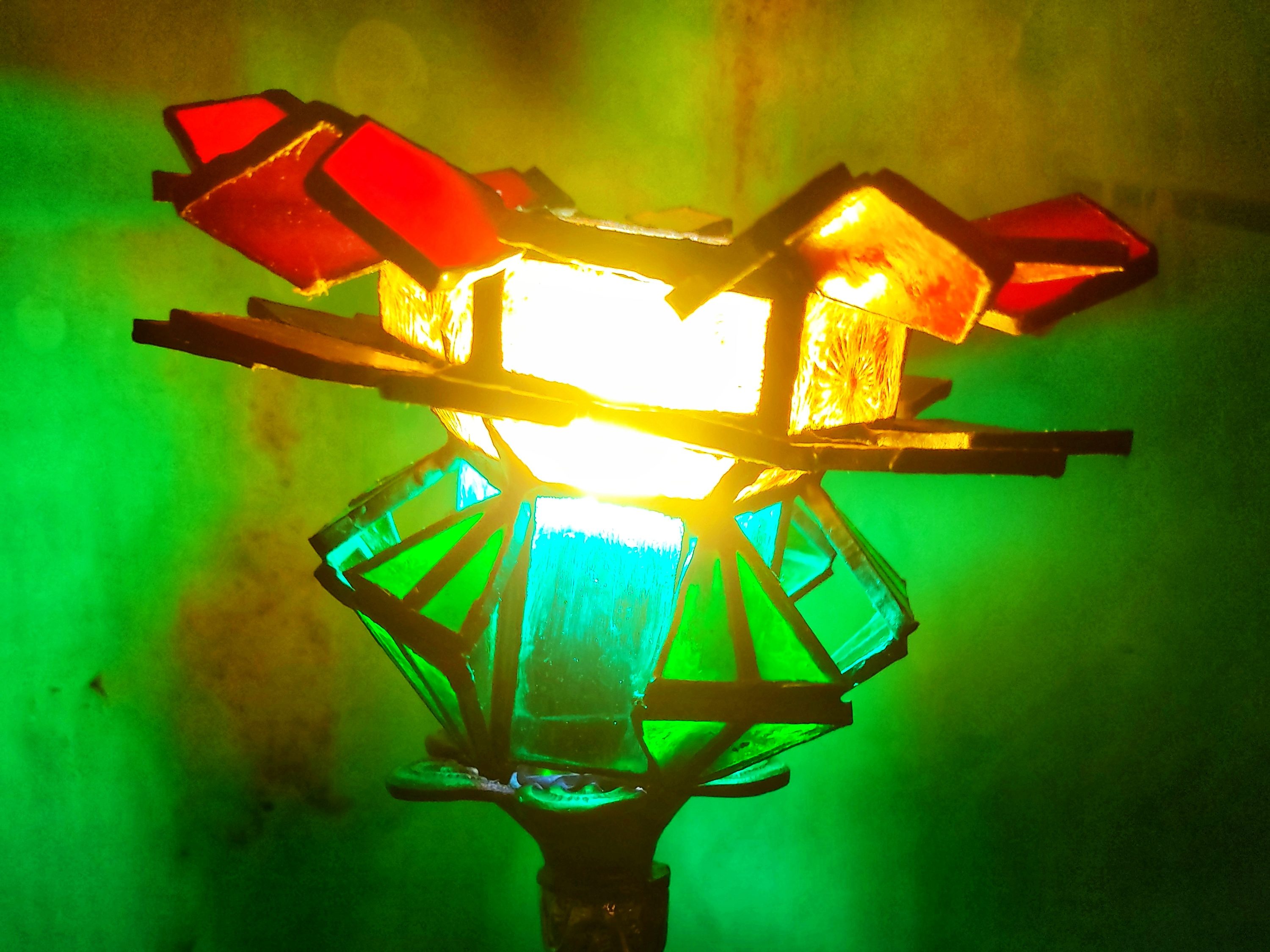 Esta lámpara nace de la voluntad de reelaborar el estilo clásico de vitral Tiffany de manera contemporánea a través de la geometría.