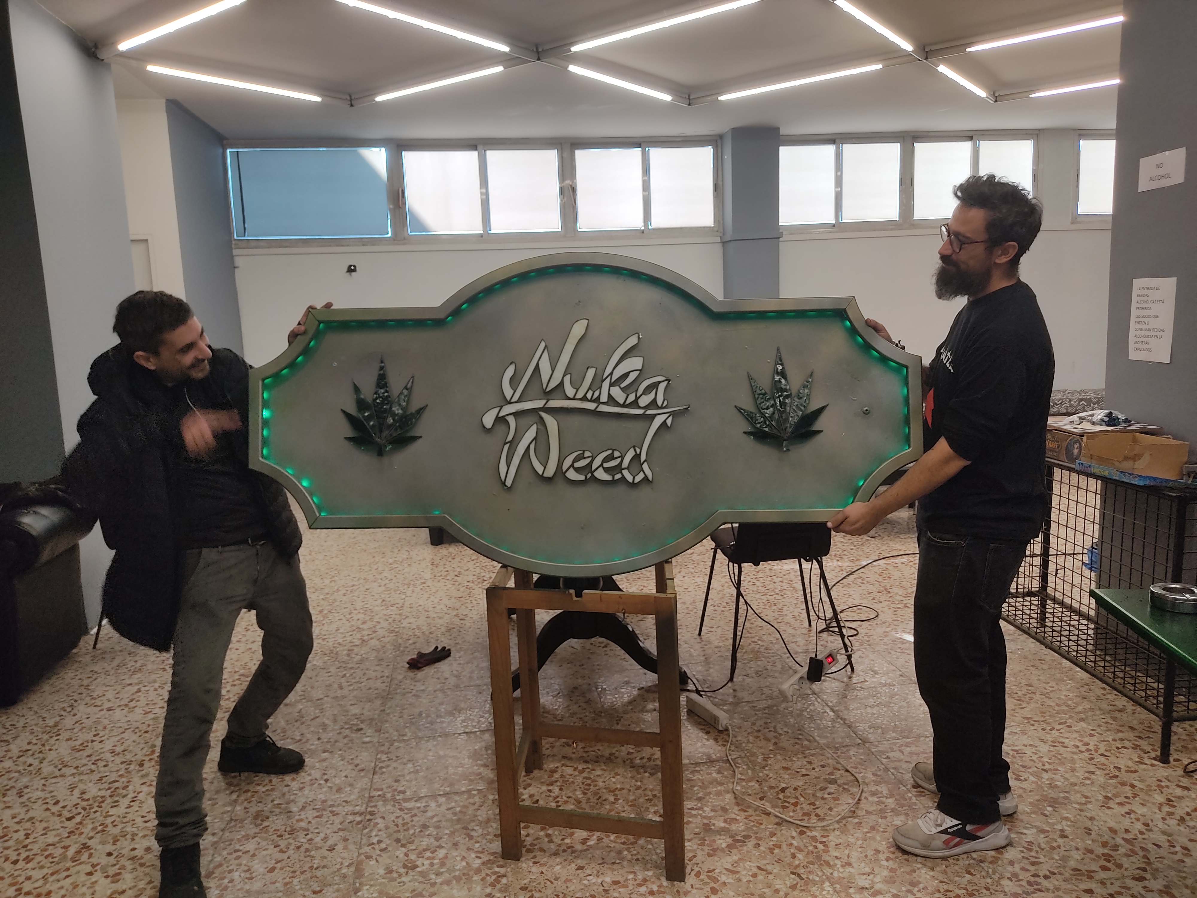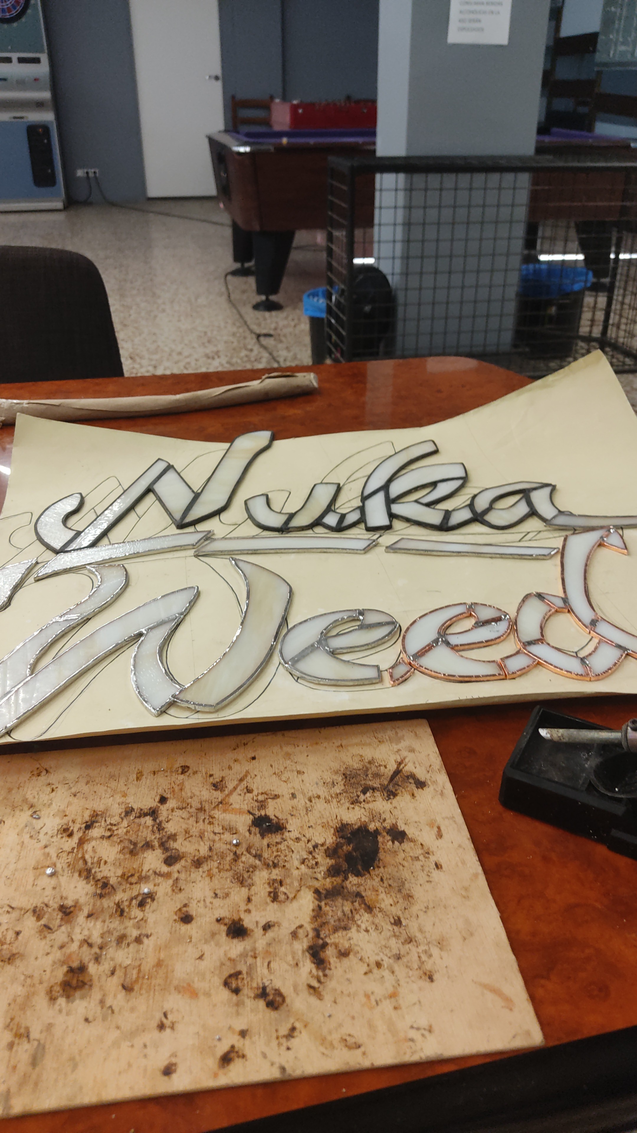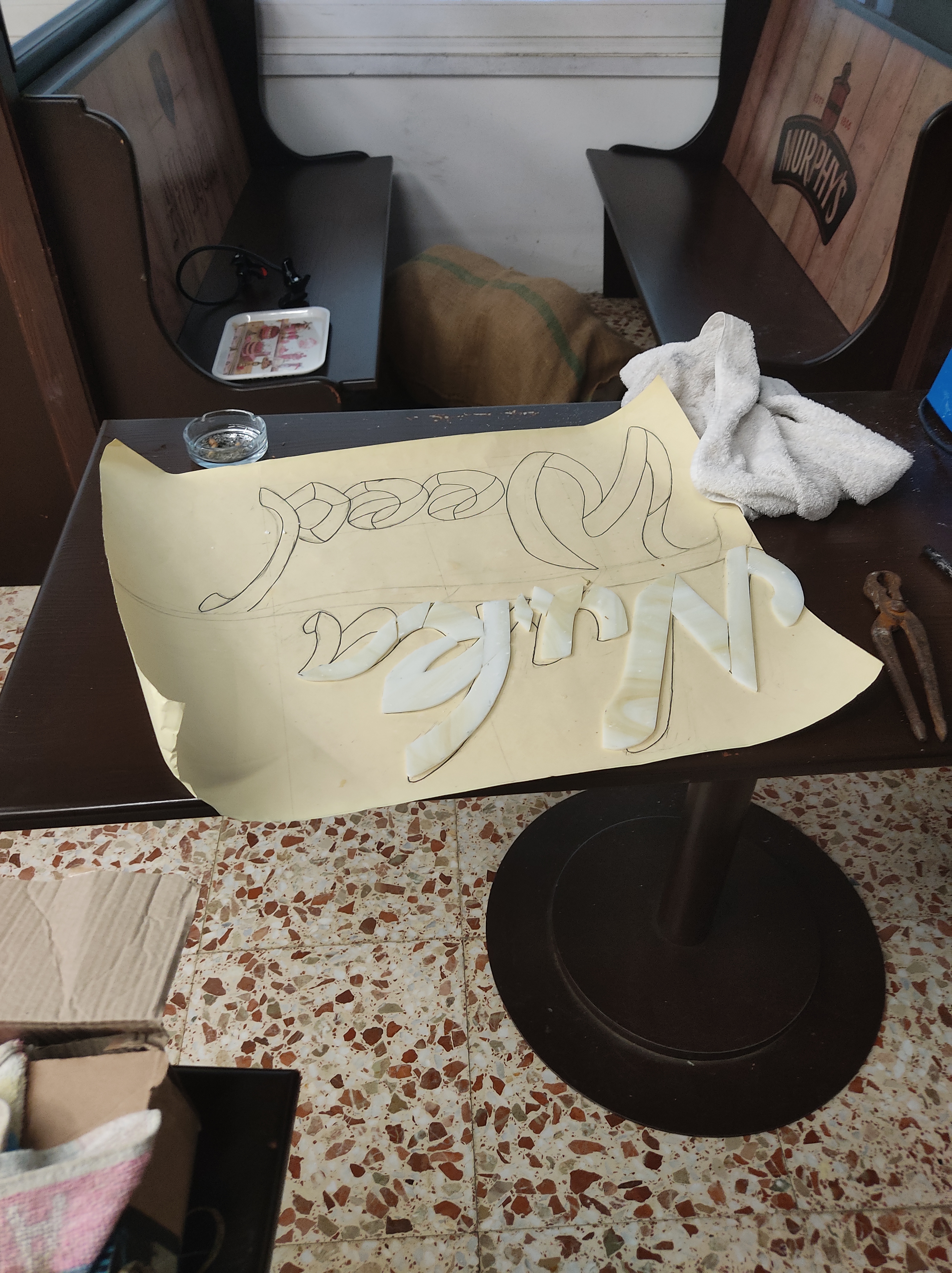 reutilizando un letrero antiguo y aportando el lettering en Vitral,