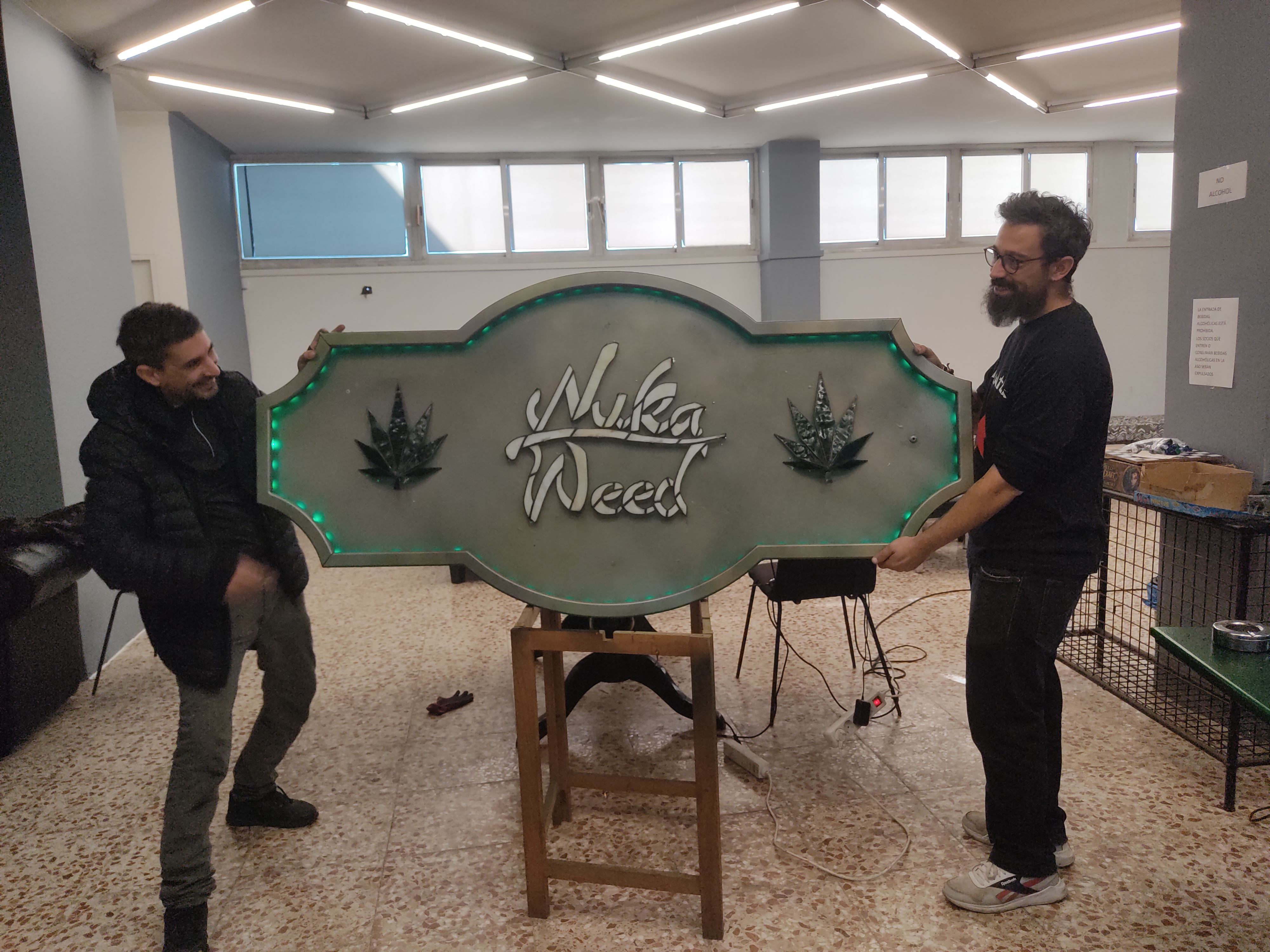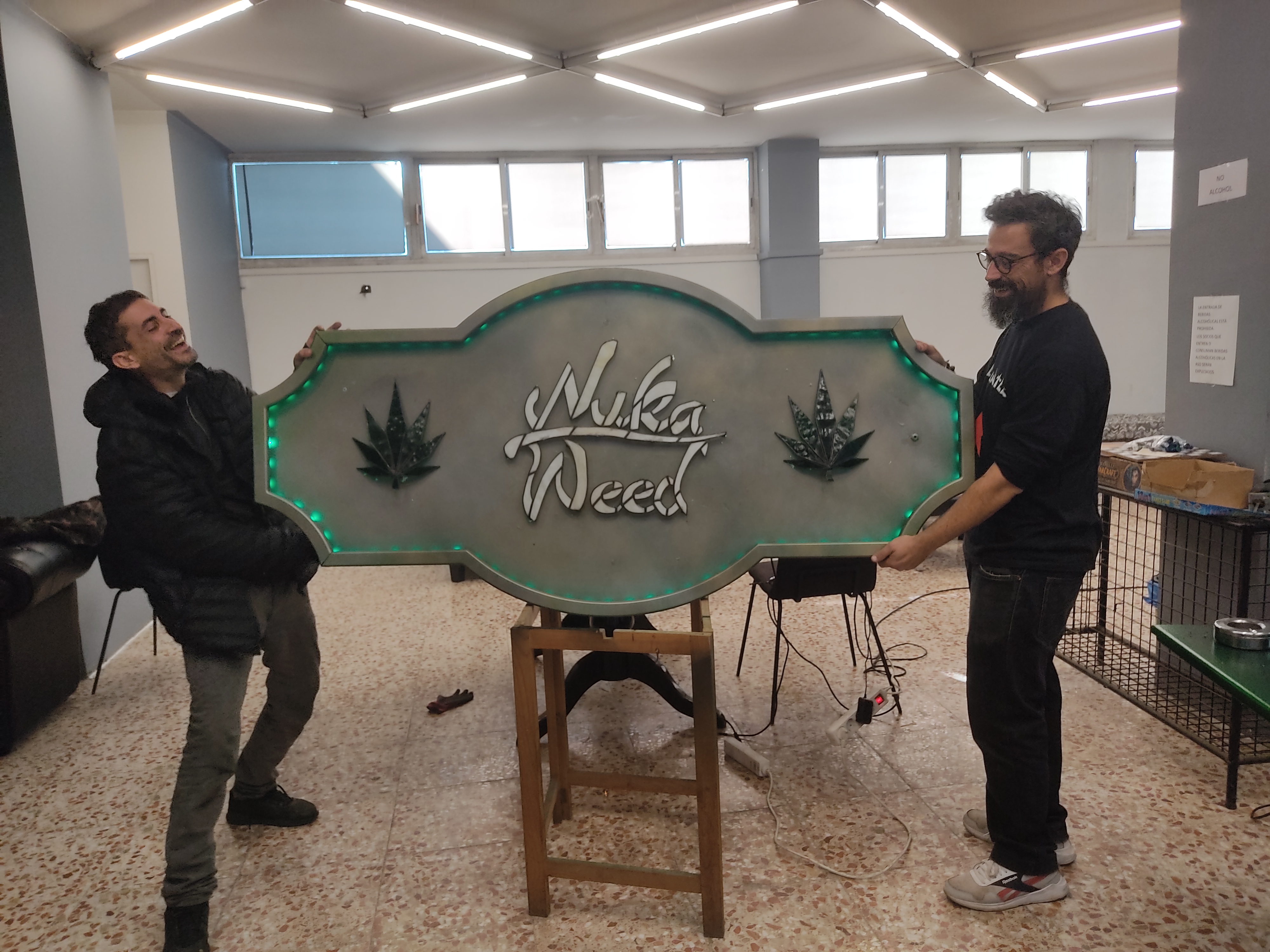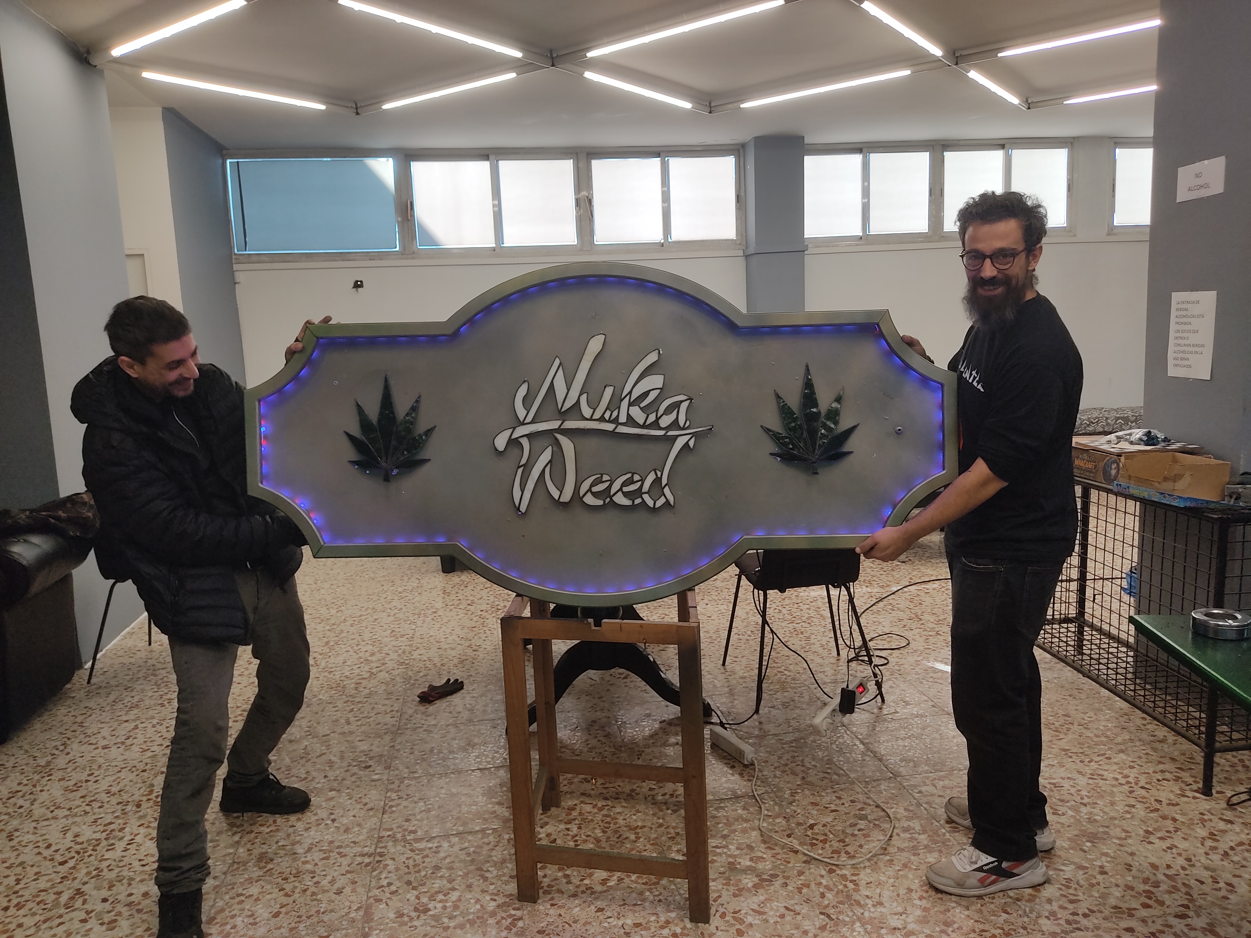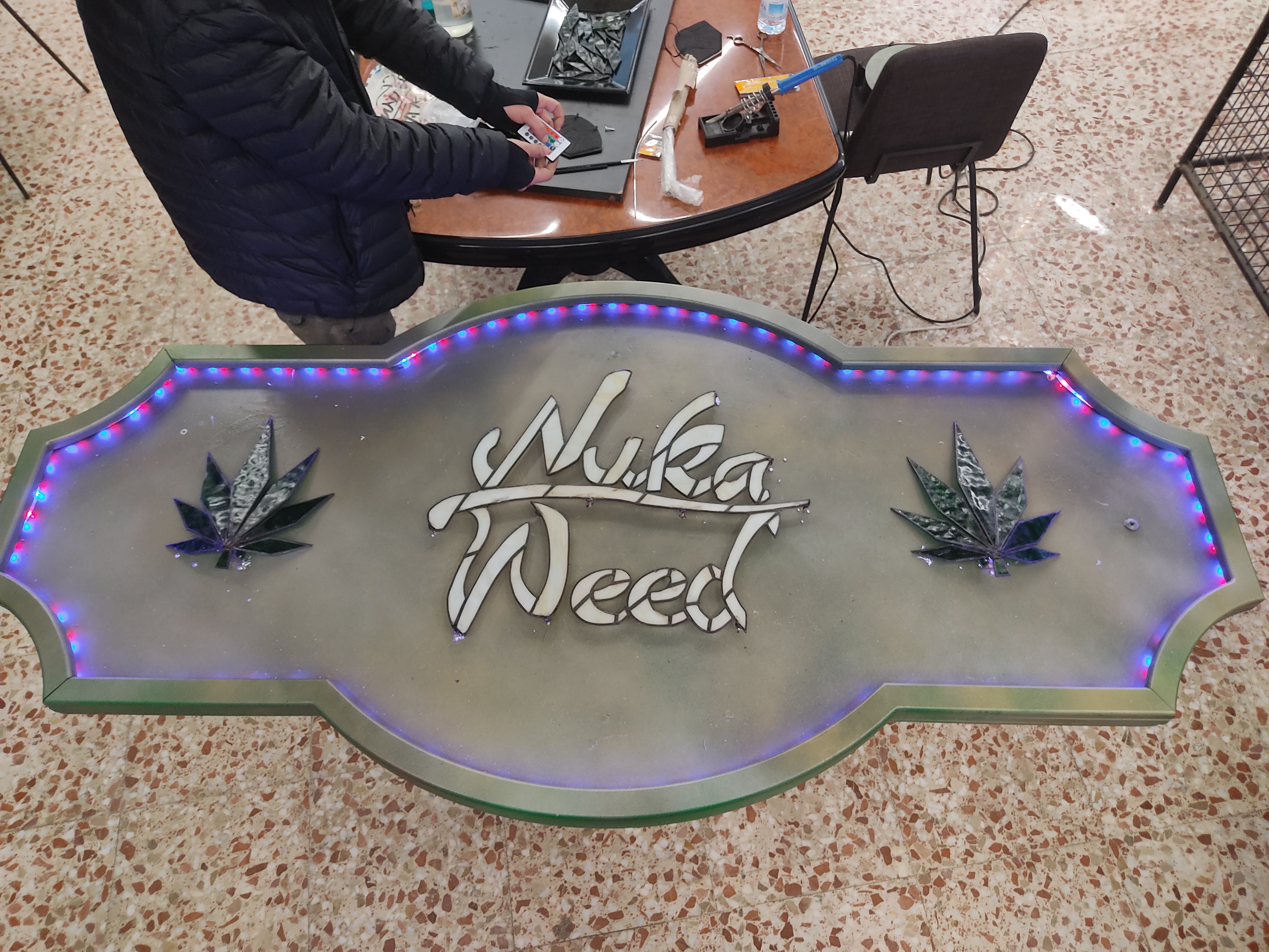 reutilizando un letrero antiguo y aportando el lettering en Vitral,