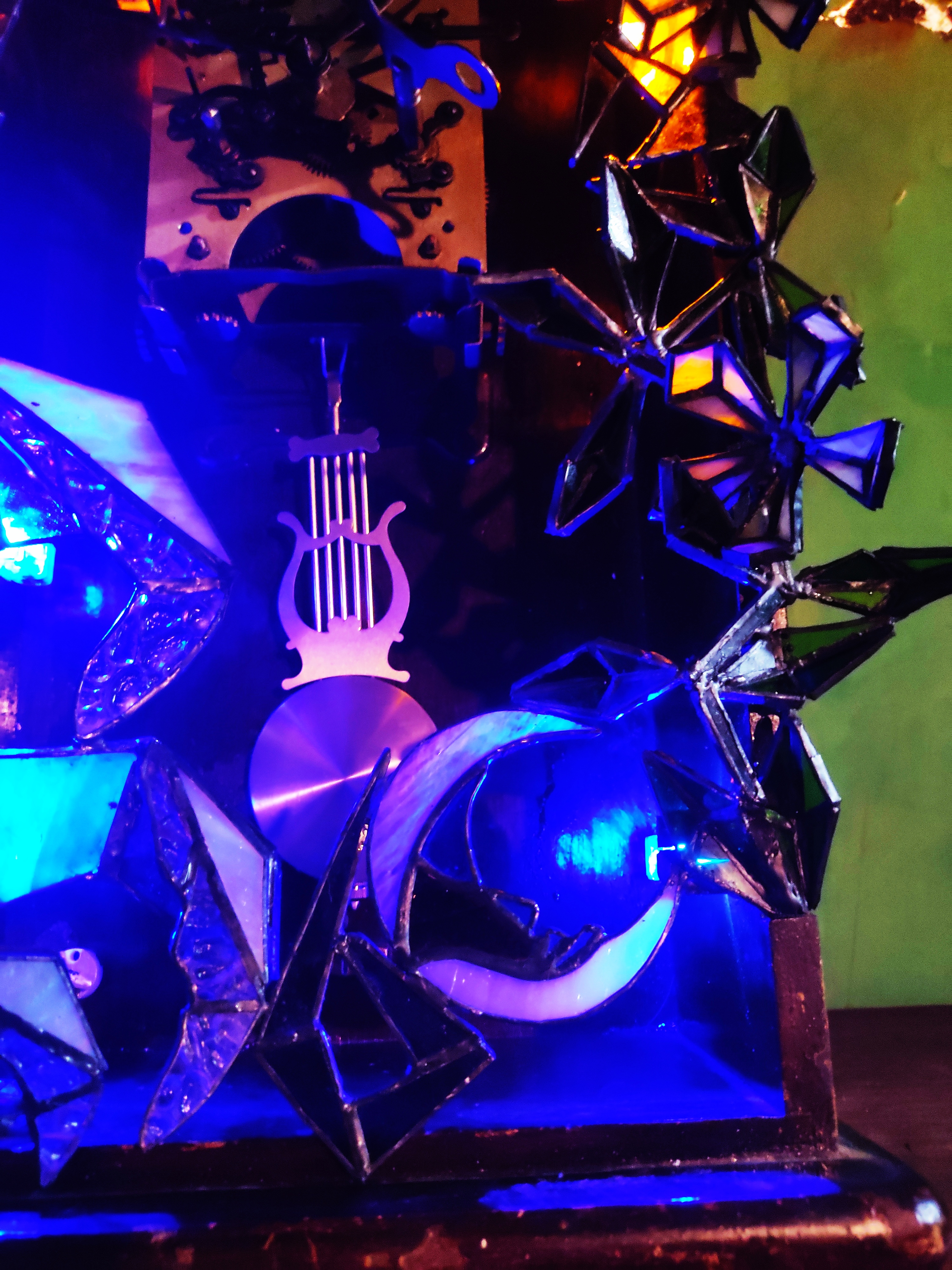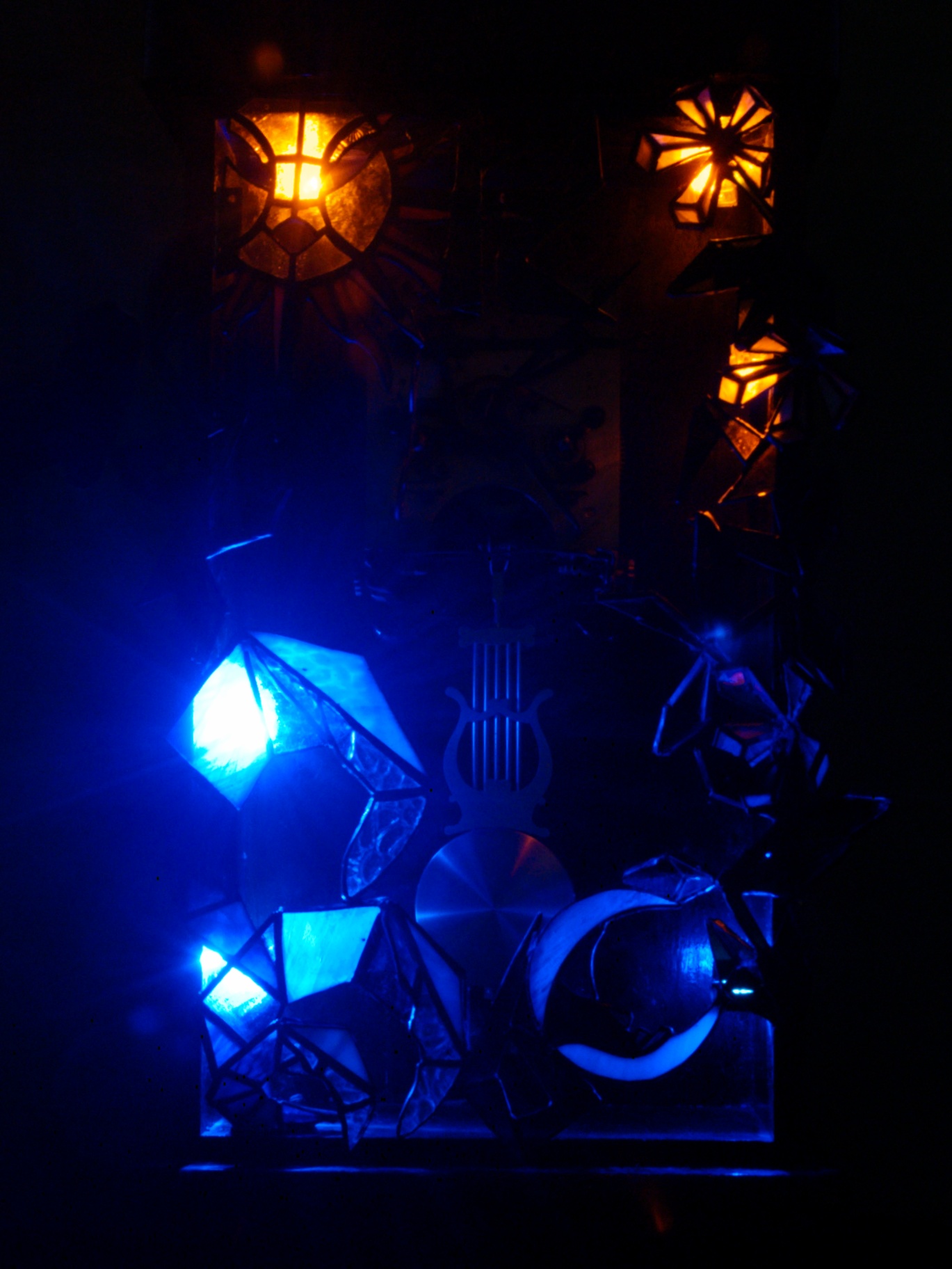 El efecto vitral y la iluminación central hacen que esta pieza sea verdaderamente mágica, expresando el tiempo de una manera única y representando aspectos esenciales de la vida y la naturaleza.