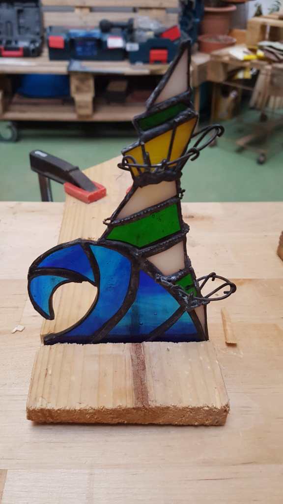Realizamos piezas en vidrio utilizando la clásica técnica Tiffany, un proceso de delicada elaboración, que consiste en la soldadura suave de piezas de vidrios encintadas en cobre.