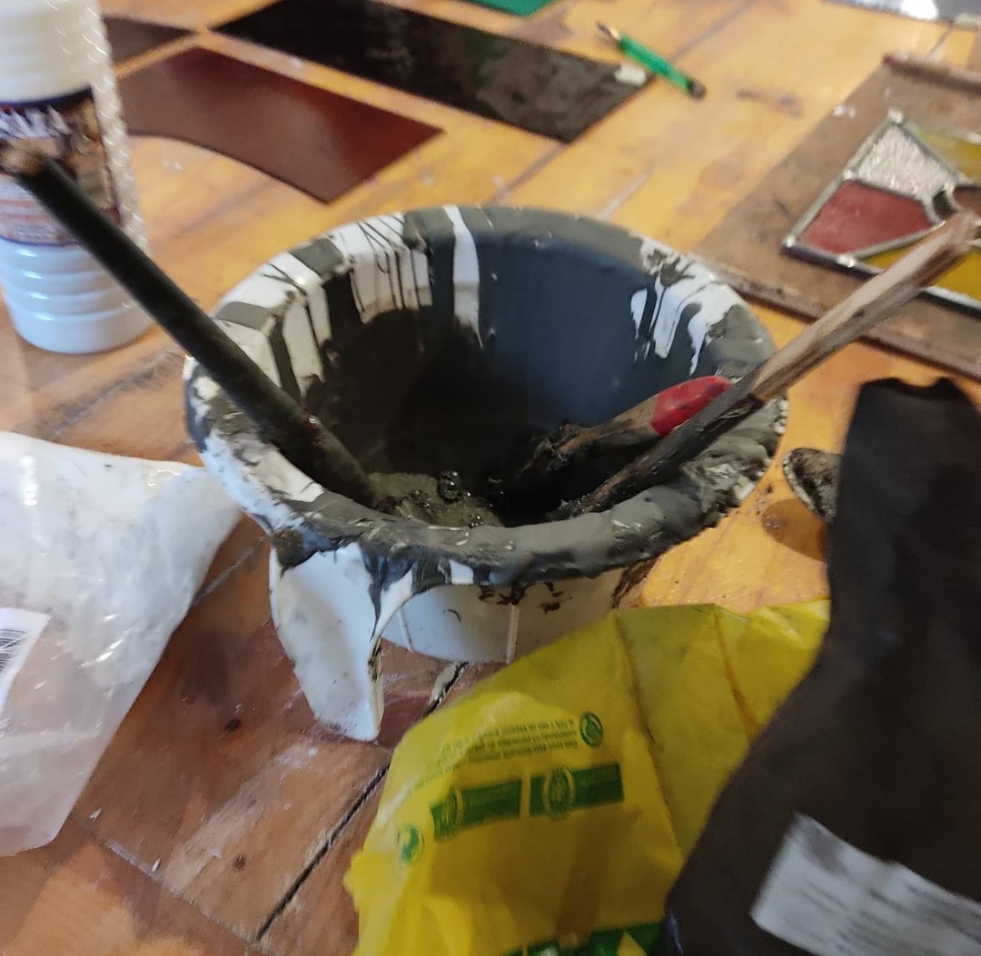 En la vidriera de la luna utilizamos la técnica tradicional de vidrio Emplomado que consiste en ensamblar las piezas de vidrio en tiras de plomo que sujetan el vidrio, posteriormente soldadas entre sí. Para finalizar el proyecto usamos una masilla que sujeta el vidrio en la parte interior del plomo sellando las uniones y logrando la consistencia y firmeza adecuada.