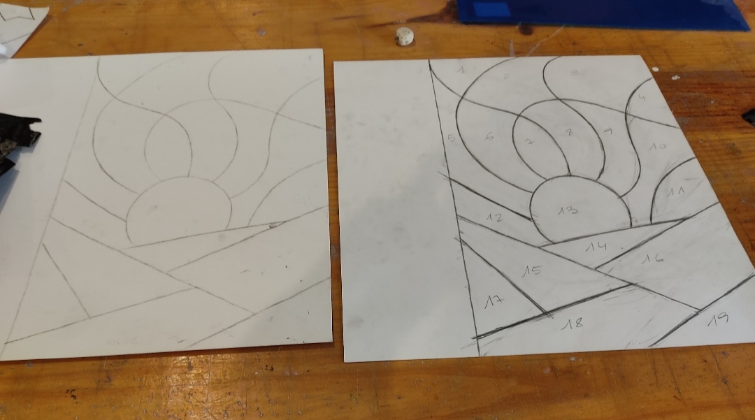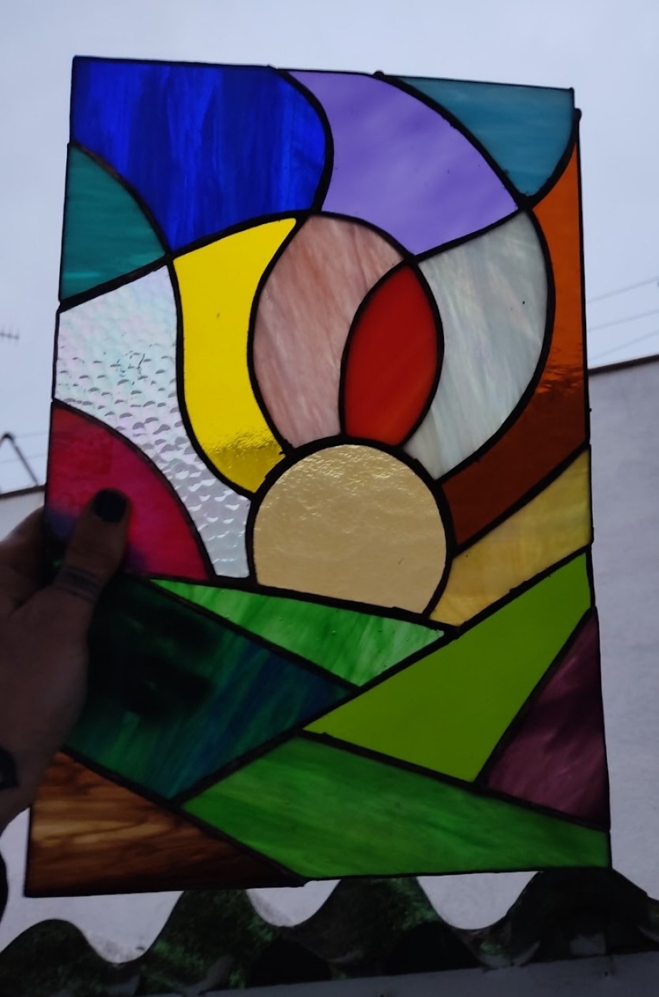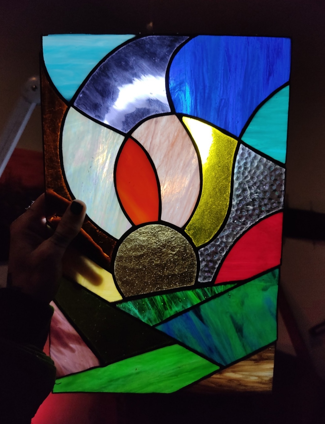 Elaboramos dos diseños contrapuestos de vidrieras para ventana, utilizando la técnica Tiffany y la técnica de vidrio Emplomado.